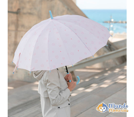 PARAGUAS GRANDE ROSA - ESTAMPADO CORAZONES